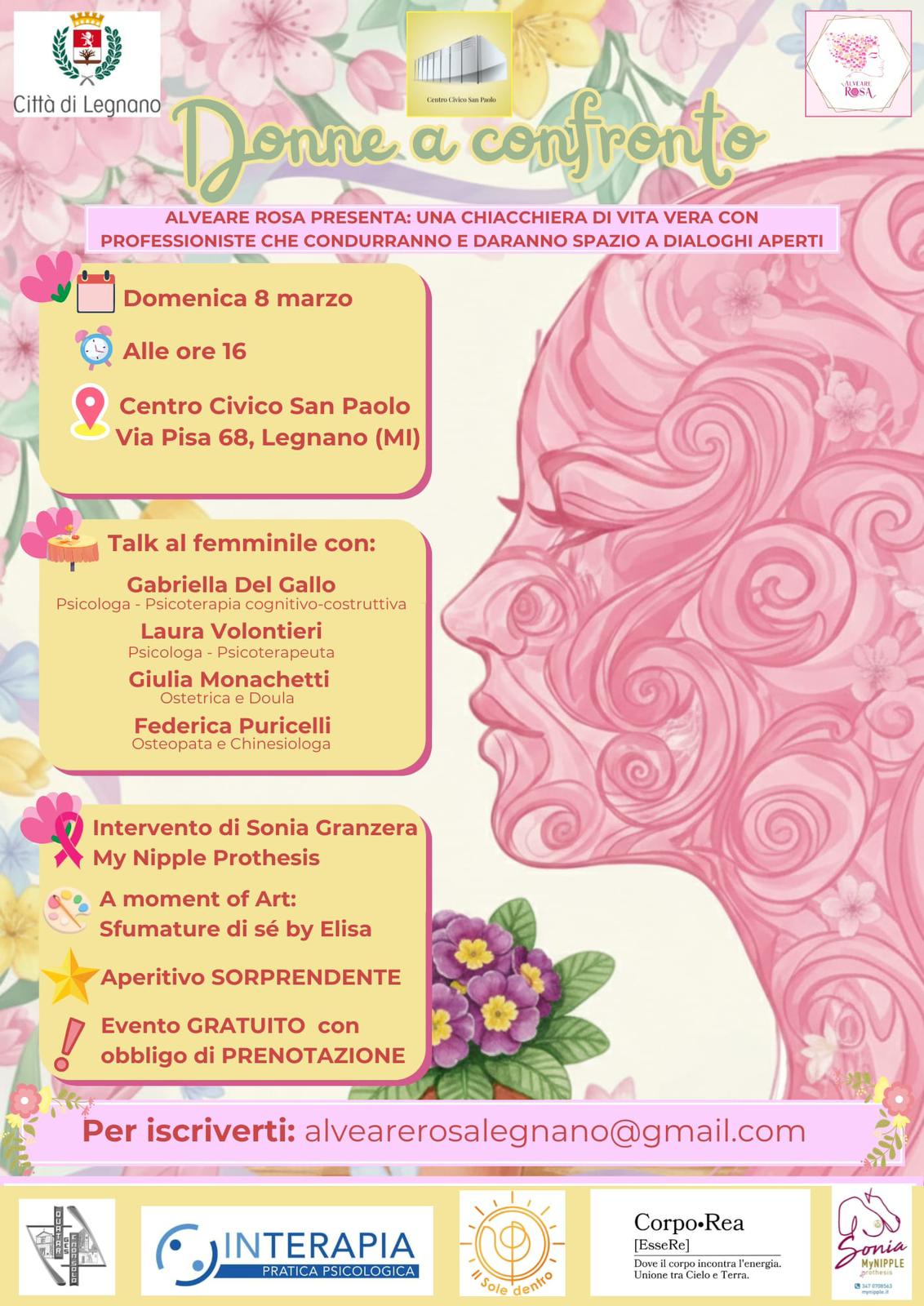In occasione della Giornata internazionale dei diritti della Donna domenica 8 marzo dalle 16 al Centro Civico San Paolo di Legnano (in via Pisa 68) si terrà l’evento “Donne a confronto, a cura di Alveare Rosa in collaborazione con l’Associazione Quatar Ges e promosso dal Comune di Legnano.