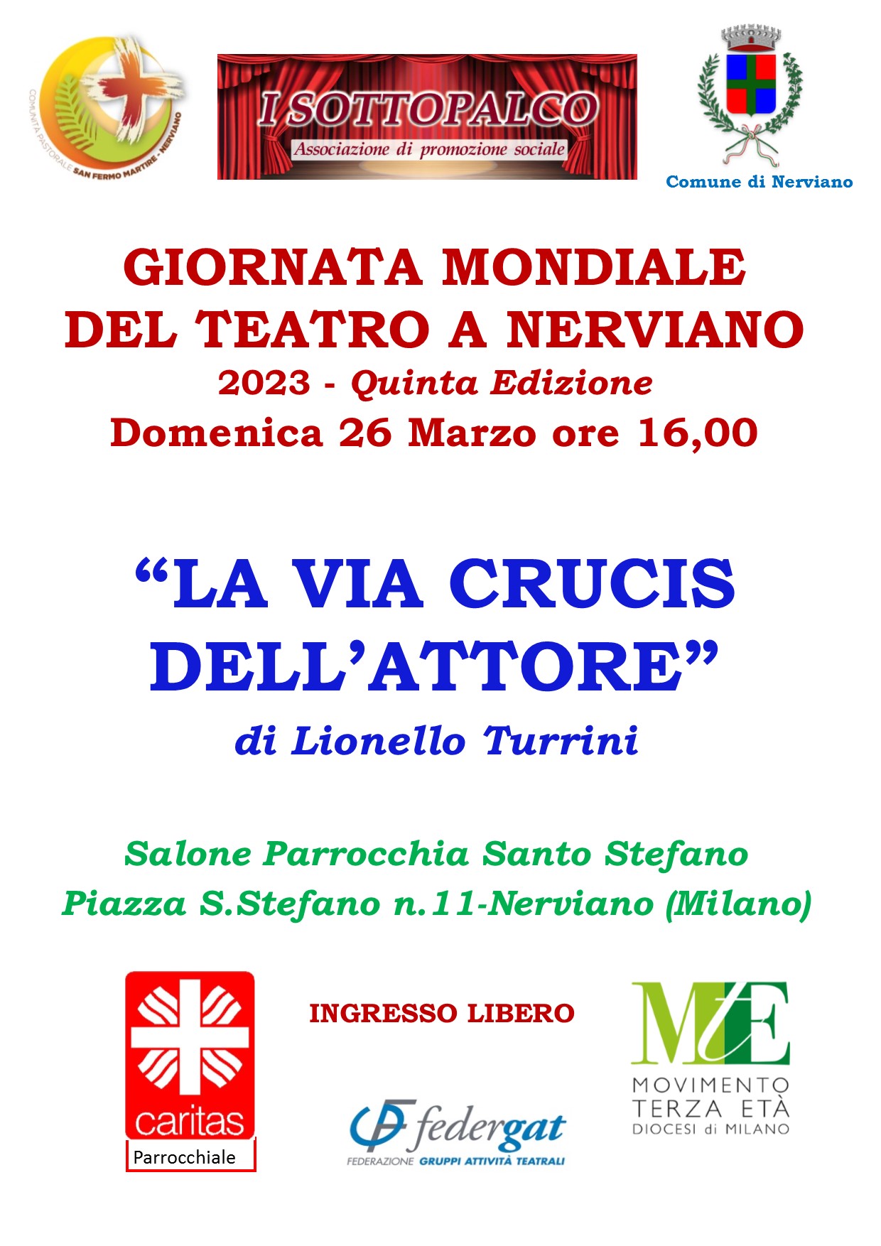 Domenica 26 marzo alle ore 16, sempre nel salone della Parrocchia S. Stefano di Nerviano, sarà la volta dei Sottopalco con una proposta alquanto insolita: “La Via Crucis dell’attore”.
