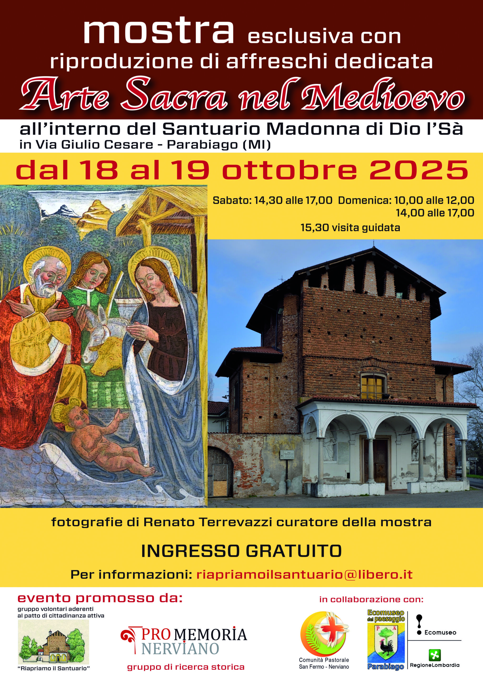 Il Santuario sorge sul confine tra Parabiago e Nerviano ed è parte integrante della parrocchia Maria Madre della Chiesa di Nerviano. Monumento nazionale e testimone della storia locale dal Cinquecento, il santuario è spesso inaccessibile. Il gruppo “Riapriamo il Santuario” lavora dal 2021 per valorizzare questo luogo, promuovendo visite e attività culturali. In occasione dell’apertura straordinaria, il pubblico potrà ammirare le fotografie di Renato Terrevazzi, dedicate all’arte sacra medievale, in un contesto di grande suggestione storica e spirituale.
