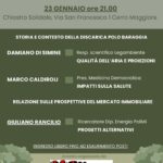 Il Comitato No Discarica organizza per venerdì 23 gennaio alle 21 al Chiostro Solidale di via San Francesco a Cerro Maggiore l’incontro “Priorità alla salute – Riqualificazione ambientale o nuova discarica?”, dedicato al Polo Baraggia.
