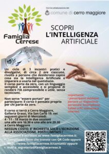 Dal 4, 11 e 18 marzo la Galleria Grassi di Cerro Maggiore ospiterà “Scopri l’Intelligenza Artificiale”, una nuova iniziativa promossa dalla Famiglia Cerrese in collaborazione con il Comune di Cerro Maggiore.