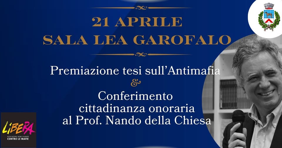Ospite della cerimonia sarà il professor Nando dalla Chiesa, che interverrà presentando il libro “Mafia ed Economia”. L’incontro offrirà una riflessione sul rapporto tra criminalità organizzata e sistema economico. Durante l’evento è previsto anche un momento istituzionale. La Commissione Antimafia del Comune di Canegrate conferirà al professor dalla Chiesa la cittadinanza onoraria, come riconoscimento per il suo impegno nella diffusione della cultura della legalità.
