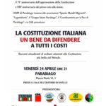 In occasione dell’81° anniversario della Liberazione, ANPI Parabiago, Spazio Mondo Migranti, Legambiente, CGIL, Coordinamento per la Pace e Gruppo Salute, organizzano l’incontro “La Costituzione Italiana, un bene da difendere a tutti i costi”, in programma per venerdì 24 aprile alle 21 nella sala conferenze dell’oratorio di Ravello.