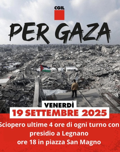 L’ultimo e tremendo attacco sferrato nella notte da Israele contro Gaza ha scosso la comunità di Legnano. Dopo il presidio spontaneo organizzato alle 18 di ieri, martedì 16 settembre in piazza San Magno è stata predisposta una nuova manifestazione per chiedere il cessate il fuoco e la pace a Gaza. L’iniziativa di protesta è stata organizzata da Cgil Ticino Olona e si terrà alle 18 di venerdì 16 settembre sempre in centro a Legnano. Per l’occasione è stato indetto anche uno sciopero di 4 ore su ogni turno di lavoro nelle fabbrica.