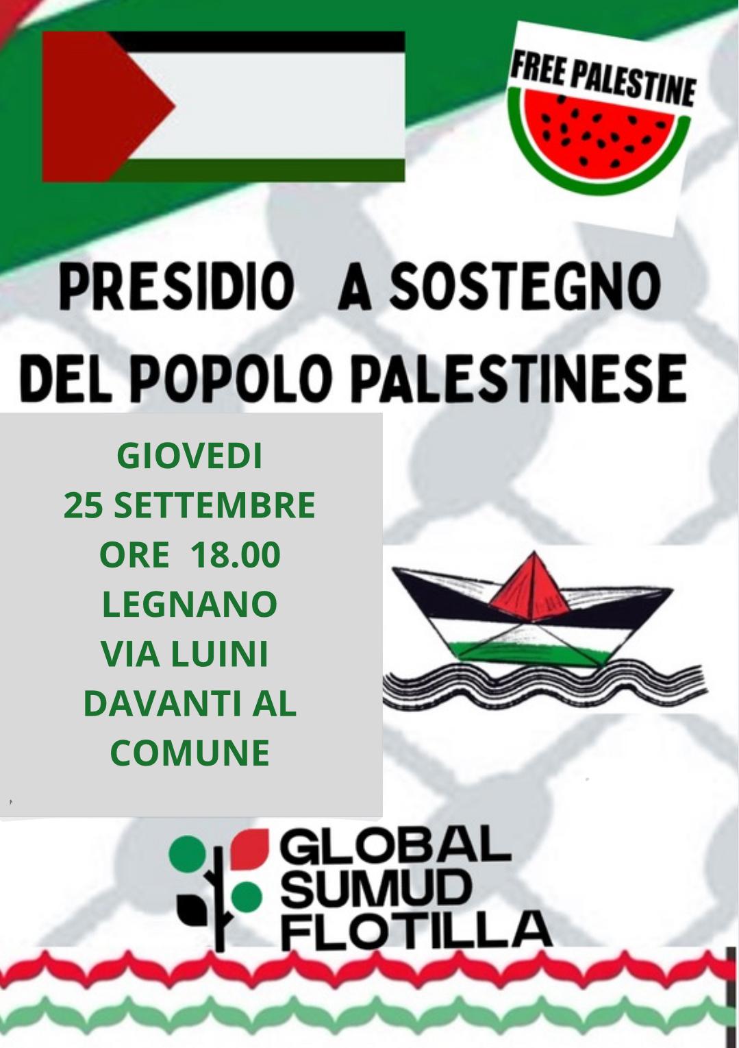 A Legano si terrà un nuovo presidio a sostegno del Popolo Palestinese. La manifestazione si terrà alle 18 di giovedì 25 settembre. Il ritrovo è in via Luini davanti al Comune di Legnano.