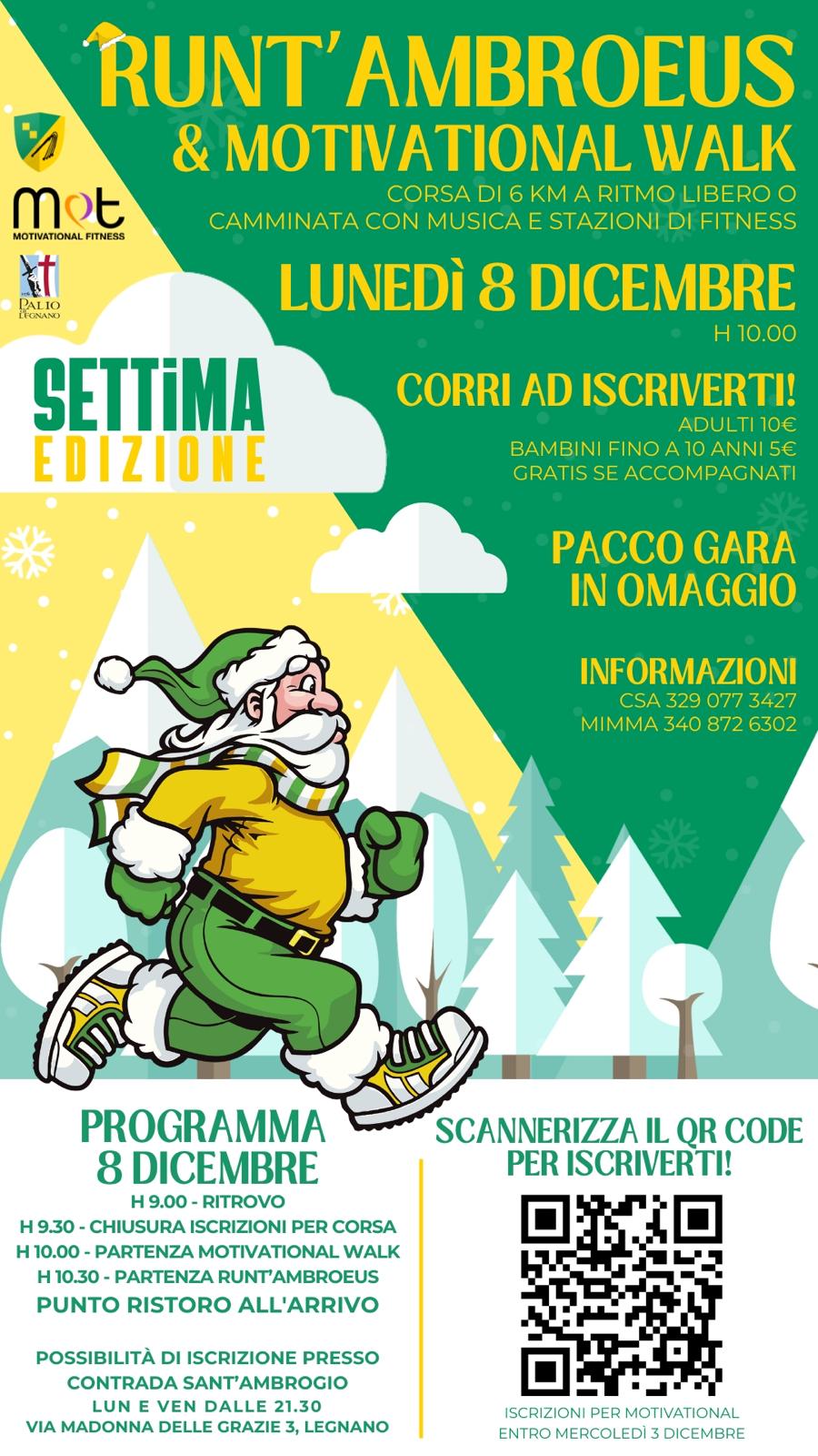 Lunedì 8 dicembre invece torna la Runt’Ambroeus…La tradizionale corsa dei gialloverdi pronta a colorare tutta la città. Ma quest’anno c’è una novità in più, avverte la contrada. Oltre alla corsa a ritmo libero di 6km, ci sarà anche la Motivational Walk, una camminata a ritmo di musica intervallata da 4 stazioni di fitness. Guidati da coach Fabio si potrà vivere una mattinata nel segno del divertimento e del benessere. Iscriversi è semplicissimo, basta compilare il form a questo link: https://forms.gle/nfccEvzno3TSJ7UQ6