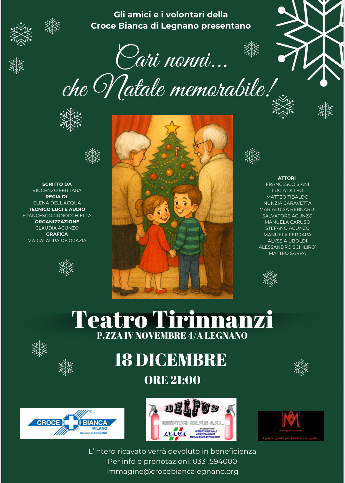 Appuntamento 18 dicembre, alle 21, Teatro Tirinnanzi, Legnano, per un evento a favore della Croce Bianca Legnano