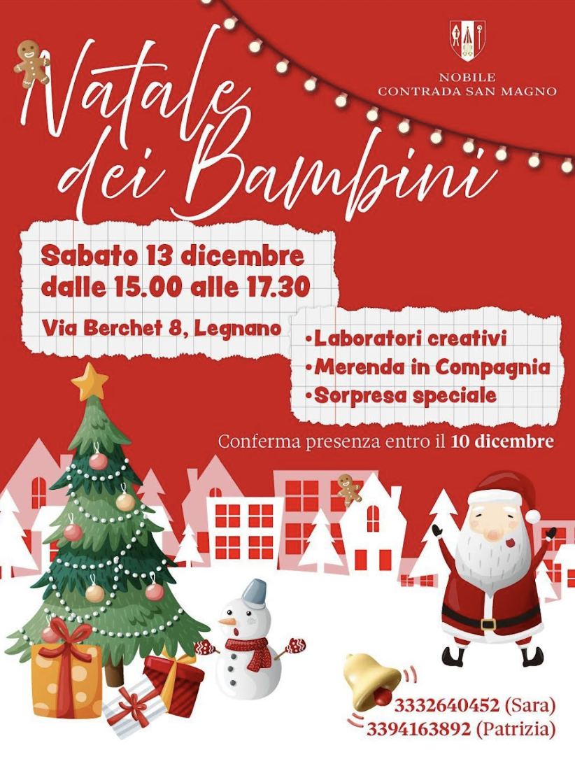 La contrada aspetto sabato 13 dicembre i più piccoli per laboratori creativi e una merenda in compagnia di...Babbo Natale