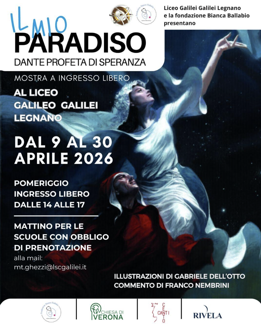 Il liceo Galileo Galilei e la Fondazione Bianca Ballabio propongono un viaggio creativo e contemporaneo nell’immaginario del Paradiso dantesco, guidato dagli studenti del liceo e dalle tavole di Gabriele dell’Otto, illustratore e fumettista della Marvel, accompagnate da un commento del prof. Nembrini. Il progetto espositivo nasce con l’obiettivo di avvicinare le nuove generazioni alla poesia di Dante, stimolando riflessione, immaginazione e partecipazione attiva, e dal desiderio di valorizzare la terza cantica della Divina Commedia di Dante Alighieri, spesso trascurata perché ritenuta troppo teologica. La mostra, inoltre, si apre nel ricordo di Bianca Ballabio, brillante studentessa del liceo che ci ha prematuramente lasciati.