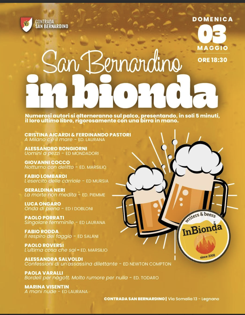 Domenica 3 maggio alle 18.30 alla Contrada San Bernardino di Legnano torna “San Bernardino in Bionda”. La manifestazione letteraria, giunta alla quinta edizione, propone incontri con autori in un formato informale.