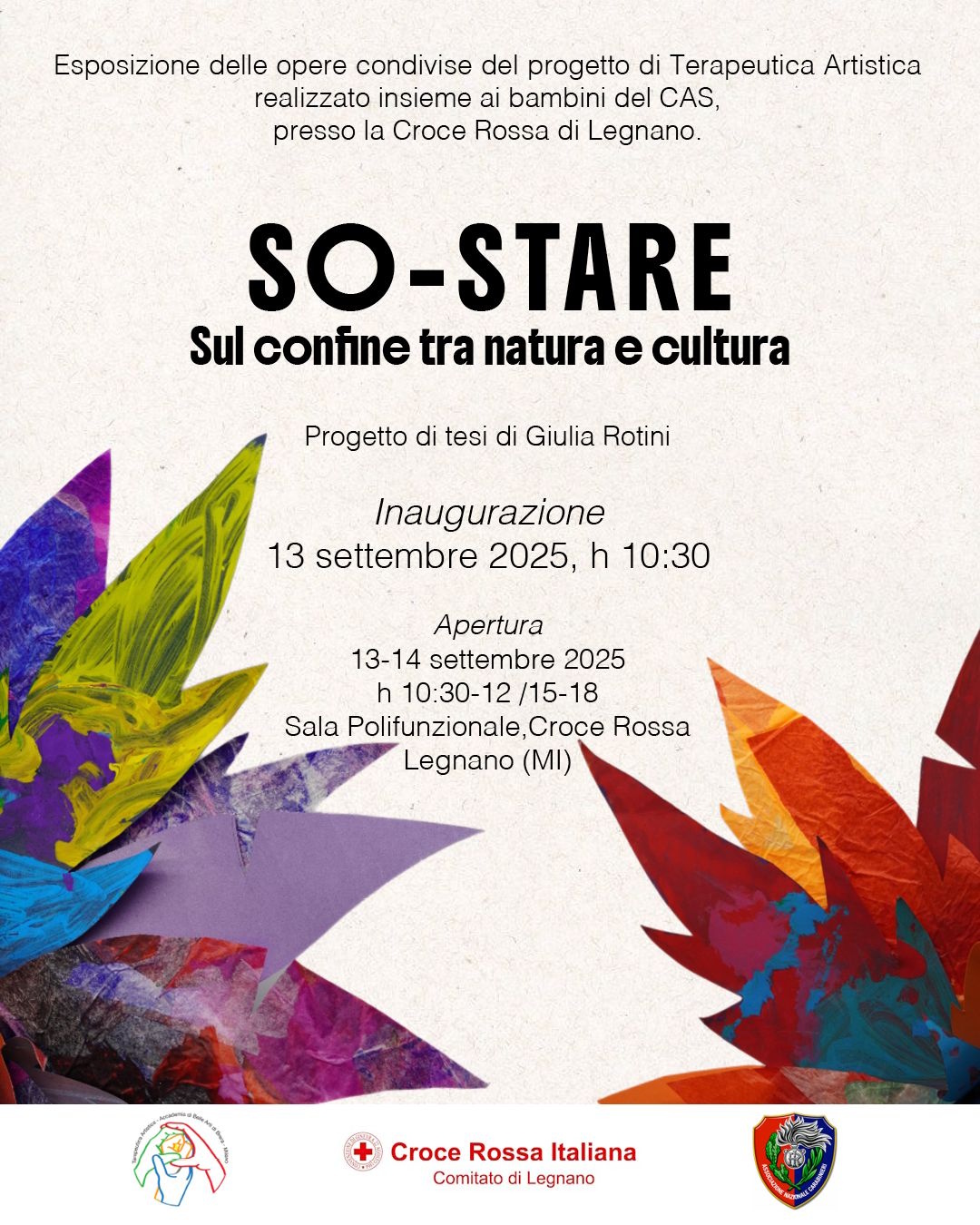 Si inaugura sabato 13 settembre alle 10.30, nella sala polifunzionale della Croce Rossa di Legnano, la mostra “SO-STARE. Sul confine tra natura e cultura”, un’esposizione artistica nata dal progetto di terapeutica realizzato insieme ai bambini del CAS (Centro di Accoglienza Straordinaria). L’iniziativa è il risultato del lavoro di tesi di Giulia Rotini.
