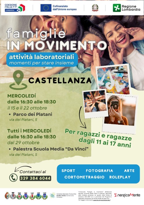 L’iniziativa rientra nel più ampio progetto “Famiglie in Movimento: Itinerari di Crescita, Riflessioni e Integrazione”, realizzato nell’ambito del bando “Sprint! Lombardia Insieme” di Regione Lombardia e cofinanziato dal Fondo Sociale Europeo Plus attraverso la Politica di Coesione 2021-2027. Il programma risponde a una visione in cui scuola, famiglia e comunità adulta assumono insieme la responsabilità di un welfare educativo integrato, creando spazi ed esperienze di partecipazione dove gli adolescenti possano esprimere le proprie potenzialità ed energie in un’ottica di contrasto alla povertà educativa. Le attività sono gratuite. Per informazioni e iscrizioni: 329 384 6044.