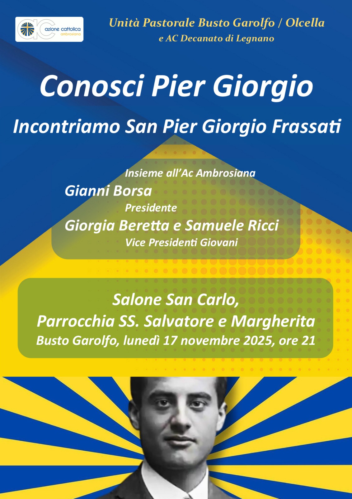 Azione Cattolica del Decanato di Legnano propone due appuntamenti serali di approfondimento e preghiera rivolti a giovani e adulti. Gli incontri, in programma giovedì 13 e lunedì 17 novembre, offriranno momenti di meditazione e confronto su tematiche spirituali e testimonianze di fede. Il primo incontro si terrà giovedì alle 21 e sarà la seconda tappa della Lectio Divina. Il tema della serata sarà “Un ragazzo di nome Èutico” e la riflessione sarà guidata da frate Fausto Licio. L’iniziativa si inserisce nel percorso spirituale proposto da Azione Cattolica per accompagnare la comunità nel tempo ordinario attraverso la meditazione biblica. Il secondo appuntamento è previsto per lunedì 17 novembre alle 21, nella parrocchia dei santi Salvatore e Margherita a Busto Garolfo. La serata sarà dedicata alla figura di san Piergiorgio Frassati e vedrà la partecipazione del presidente diocesano di Azione Cattolica Gianni Borsa, insieme ai vicepresidenti del settore giovani Giorgia Beretta e Samuele Ricci.
