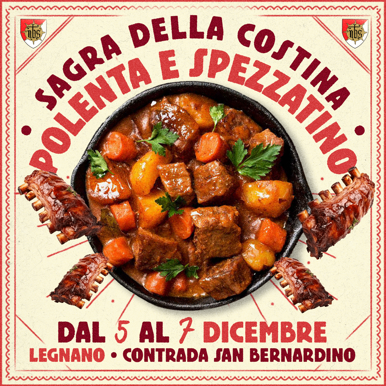 Il profumo delle griglie accese e il calore della tradizione tornano a scaldare l’inverno legnanese con una nuova, gustosa iniziativa. Dal 5 al 7 dicembre, la Contrada San Bernardino di Legnano (via Somalia 13) ospiterà la prima edizione della Sagra della Costina, Polenta e Spezzatino, organizzata da Street Food Parade in collaborazione con l’Associazione Contrada San Bernardino. Un weekend dedicato alla cucina più rustica e genuina, dove protagonisti assoluti saranno i piatti che più di ogni altro sanno raccontare la stagione fredda: le costine succulente, la polenta fumante e lo spezzatino tenerissimo, preparati con maestria e passione dal sempre apprezzato chef Pippo.