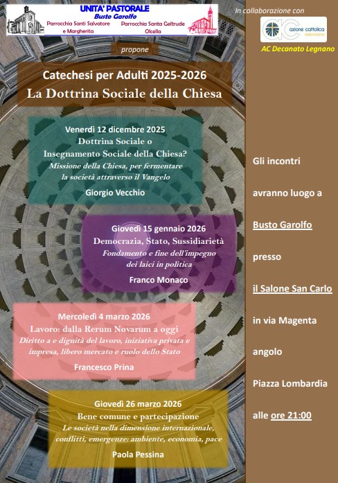Lectio Divina e incontro sulla Dottrina sociale della Chiesa nel calendario settimanale. Due appuntamenti tra Legnano e Busto Garolfo