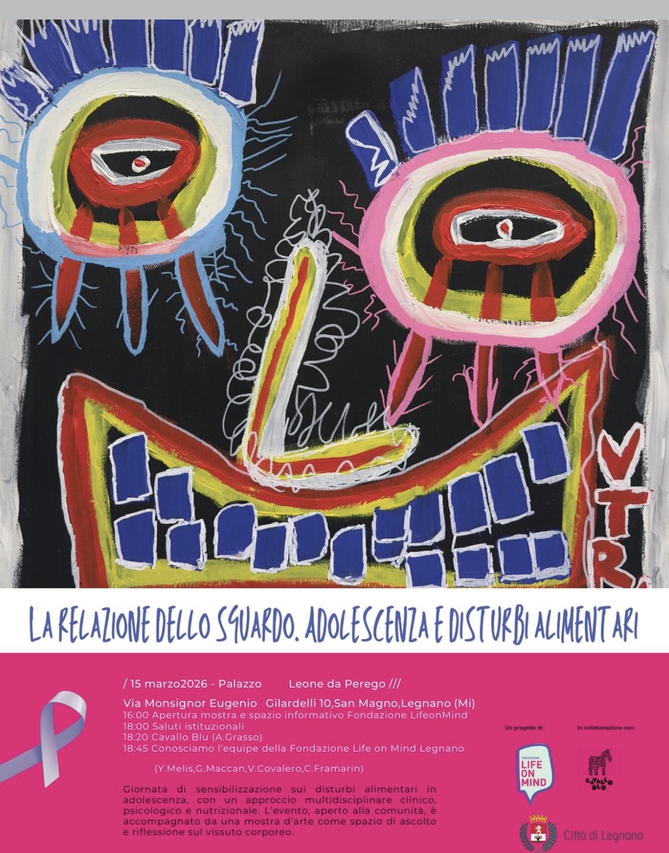 Domenica 15 marzo a Palazzo Leone da Perego a Legnano, in occasione della Giornata Nazionale del Fiocchetto Lilla per i disturbi del comportamento alimentare, appuntamento alle 16 con una mostra d’arte organizzata dalla Fondazione Life on Mind in collaborazione con Cavallo Blu. L’esposizione è pensata sia come momento di sensibilizzazione sia come spazio di ascolto e riflessione sul vissuto corporeo e cognitivo, dove potersi confrontare apertamente con la comunità con un approccio multidisciplinare clinico, psicologico e nutrizionale.