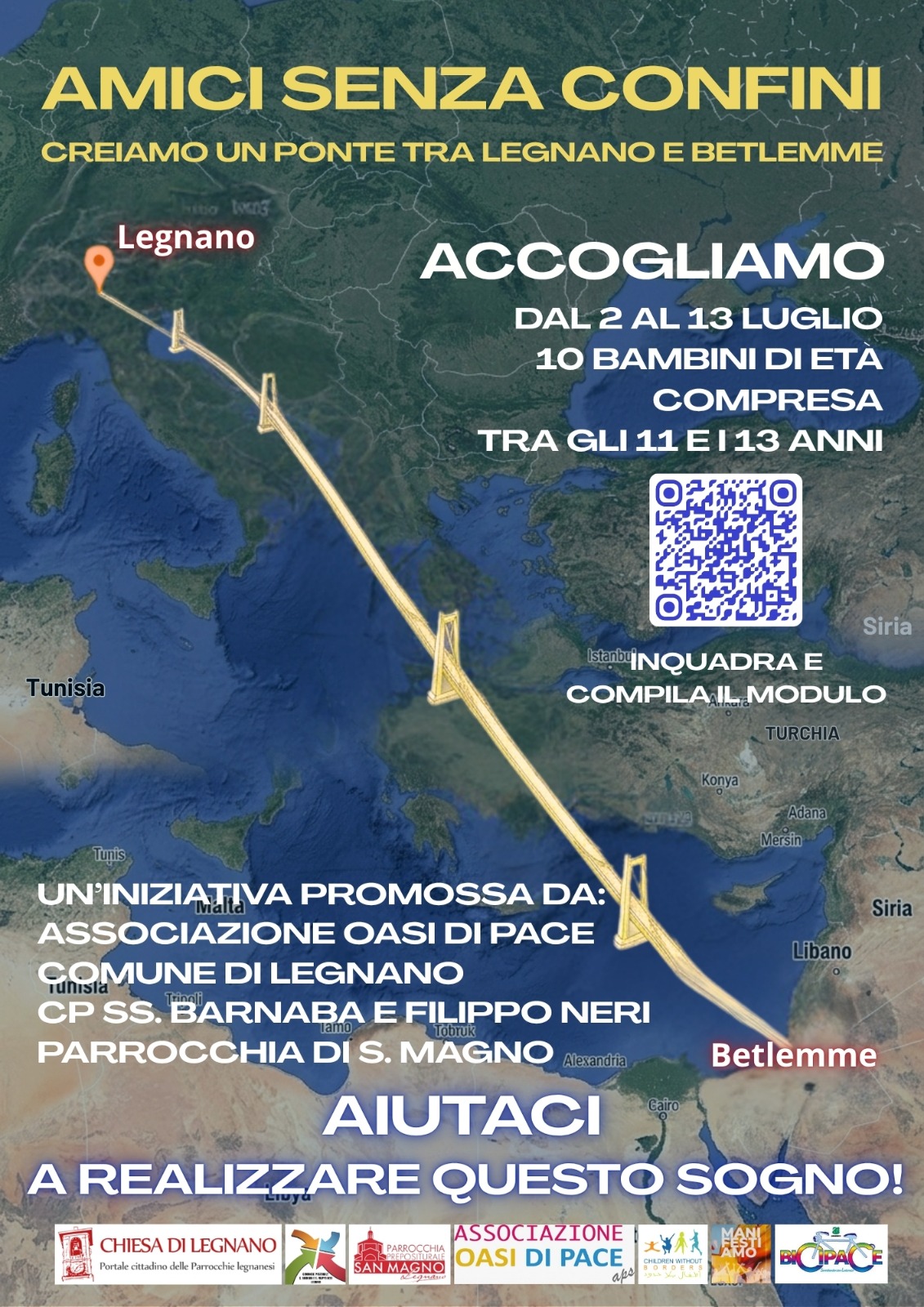 durante il periodo indicato. Le famiglie interessate possono dare la propria disponibilità entro domenica 19 Aprile, attraverso il link informativo https://form.jotform.com/betlemmelegnano/amici-senza-confini, disponibile anche tramite QR code.