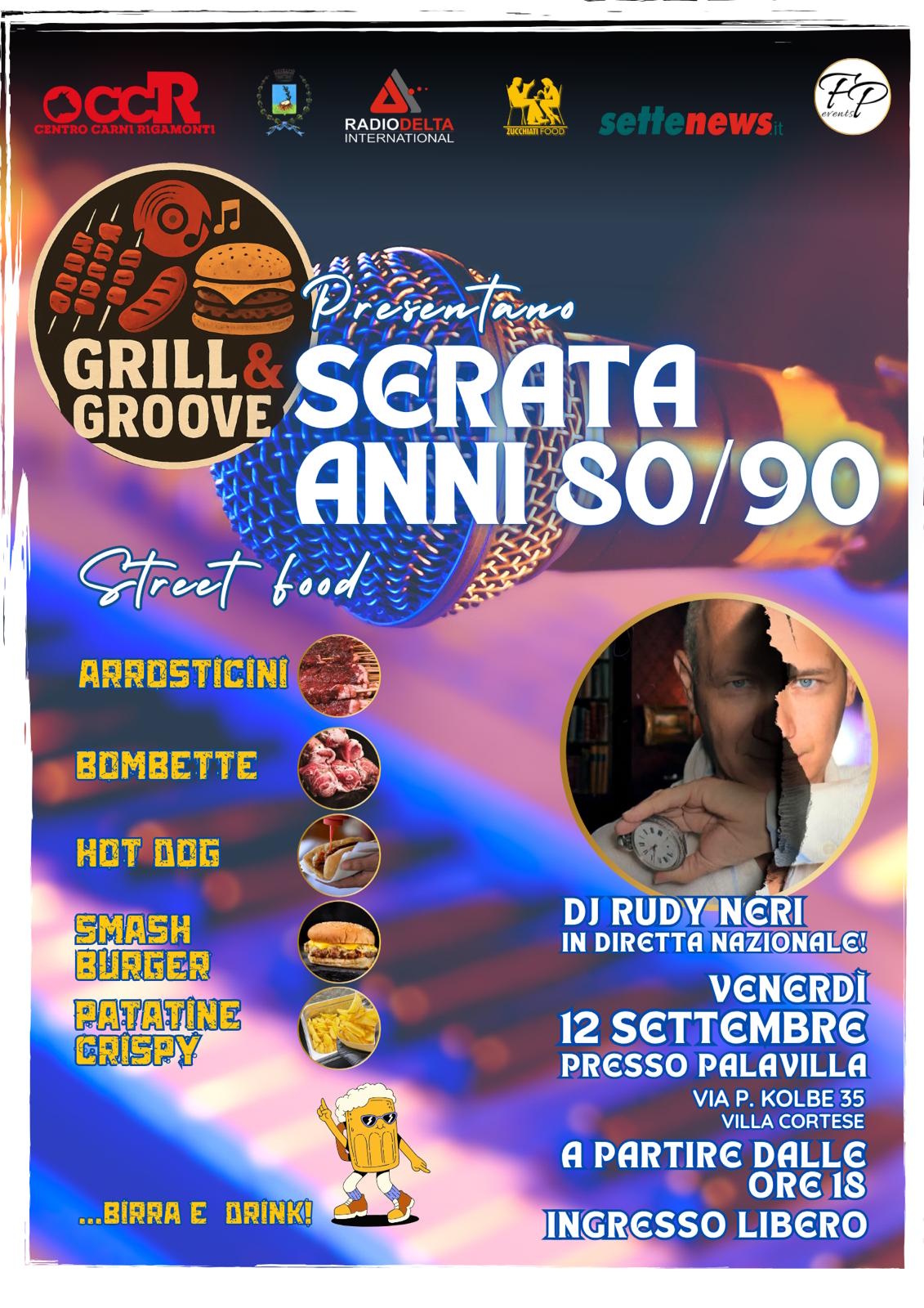 Musica revival, cibo di strada e atmosfera anni ’80 e ’90 animeranno la serata di venerdì 12 settembre a Villa Cortese. L’evento, organizzato da Grill & Groove, si svolgerà al Palavilla di via Kolbe 35, a partire dalle 18. Ospite della serata sarà DJ Rudy Neri, in diretta nazionale. L’appuntamento è per venerdì 12 settembre: la festa proseguirà per tutta la serata. L’ingresso è gratuito.