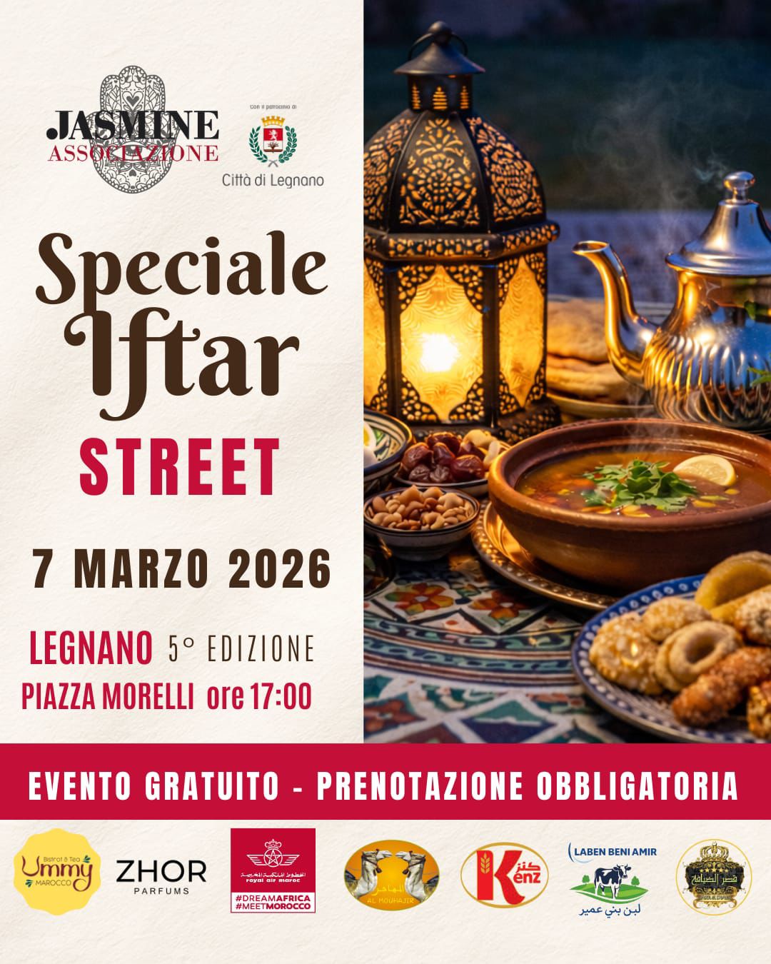 Sabato 7 marzo, a partire dalle 17, piazza Morelli a Legnano ospiterà una grande tavola multiculturale per celebrare l’Iftar, il momento che segna la rottura del digiuno durante il Ramadan.