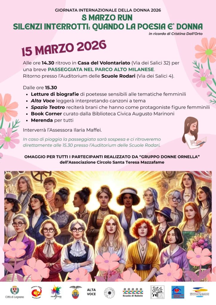 Sabato 15 marzo, a partire dalle 14.30, alla Casa del Volontariato di via dei Salici 32 a Legnano, prenderà il via un pomeriggio dedicato alla cultura, alla condivisione e alla valorizzazione delle voci femminili. L’iniziativa si aprirà con una passeggiata nel suggestivo Parco Alto Milanese, un momento per immergersi nella natura e iniziare insieme un percorso fatto di parole, musica ed emozioni, nel ricordo della legnanese Cristina Dall’Orto