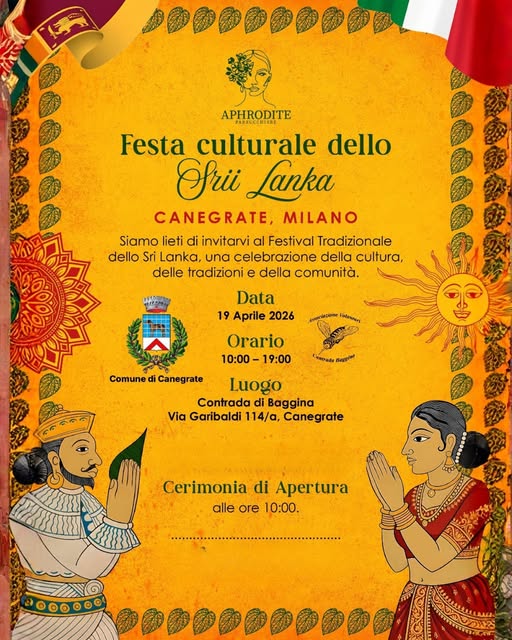 Una festa culturale dello Sri Lanka è in programma a Canegrate domenica 19 aprile con una giornata dedicata a tradizioni e comunità. L’iniziativa, organizzata come festival tradizionale, si terrà nella contrada di Baggina. La “Festa culturale dello Sri Lanka” è una celebrazione della cultura, delle tradizioni e della comunità singalese. L’evento è promosso con il coinvolgimento del Comune di Canegrate e si presenta come un momento di incontro aperto al territorio.