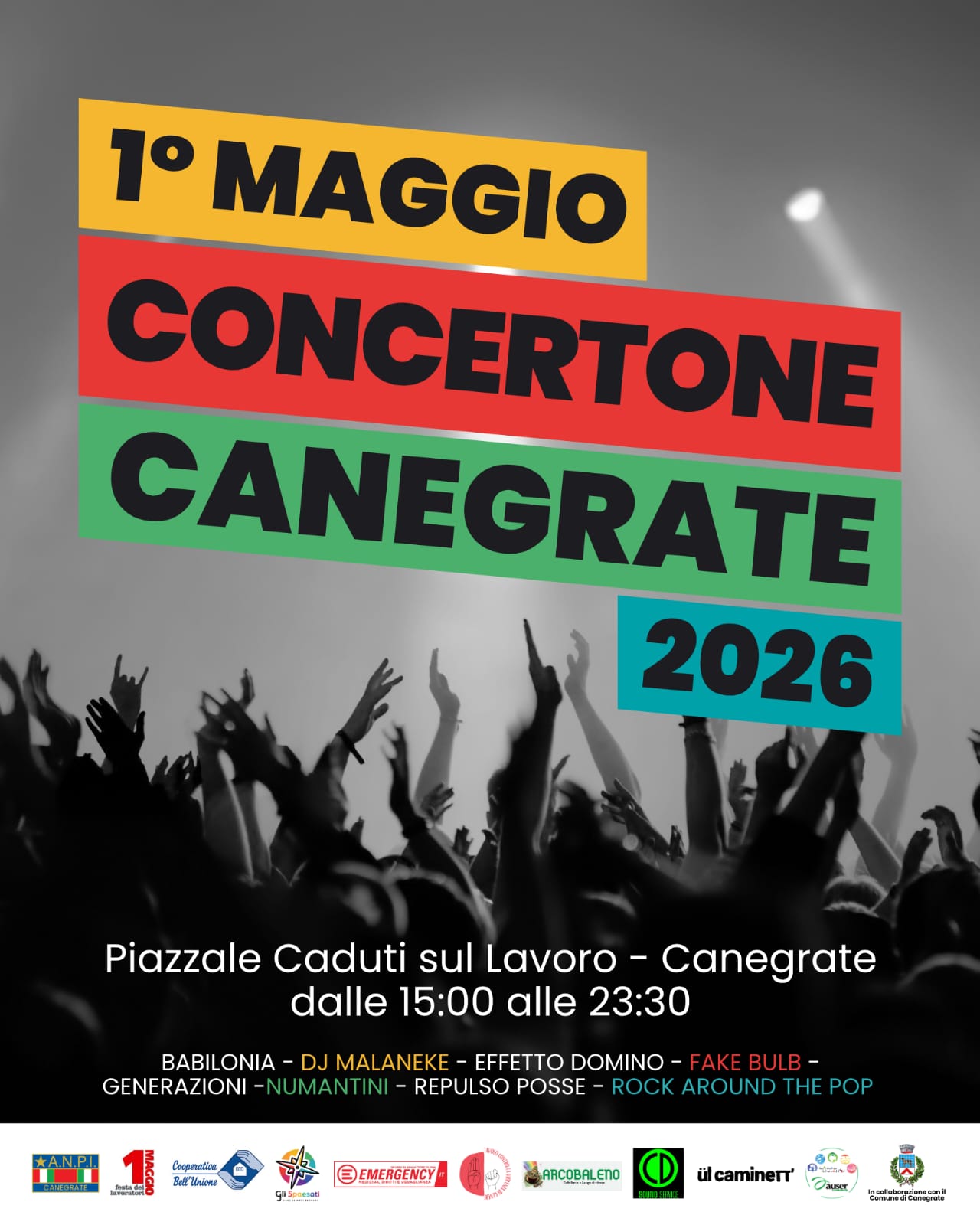 Il Concertone del 1° maggio 2026 a Canegrate si terrà in piazzale Caduti sul Lavoro con musica live per tutta la giornata. L’evento è organizzato in occasione della Festa dei lavoratori e vedrà alternarsi diversi artisti sul palco.