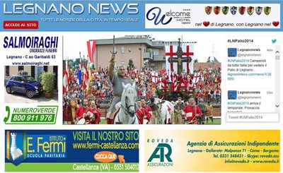 Dalle 16 di oggi, questa sotto sarà l'immagine che i lettori vedranno come homepage del nostro sito. Si tratta della pagina in cui verranno diffuse in streaming le immagini in diretta di Telelombardia. Un appuntamento con il Palio, Telelombardia e Legnanonews da non perdere!