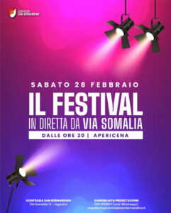 Sabato 28 febbraio dalle 20 il maniero della contrada San Bernardino ospiterà una serata per vivere tutti insieme il Festival di Sanremo con la trasmissione in diretta della serata finale.
