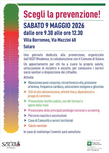 “Scegli la prevenzione!” Tornano i banchetti in piazza dell’ASST Rhodense Sabato 9 maggio prima tappa Solaro